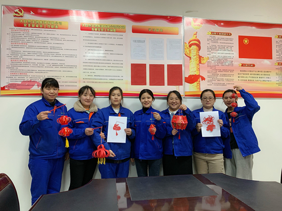 隨后,將制作花燈、剪紙的材料分發給大家,按照抖音中的制作教程進行講解,大家躍躍欲試,嚴謹的進行裁剪,折疊,粘貼,三倆人一起合作,不一會兒,幾個紅包,在默契配合下,被制作成一只只鮮紅喜慶、別樣精致的小花燈,各式各樣的剪紙作品。活動現場洋溢著熱鬧、溫馨的節日氛圍。